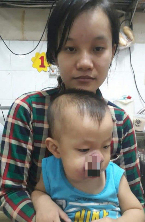 Nhưng vì lúc đó tiền chưa có, công việc lại không ổn định nên em đưa con về uống thuốc nam, định bụng gom đủ tiền rồi tính. Nào ngờ khối u lại lớn nhanh đến như vậy, sau 1 tháng, cái nốt nhỏ xíu như hột mụn đó đã sưng to bằng đầu ngón tay, nâng hốc mũi của con to ra khiến con vô cùng đau đớn, 2-3 ngày sau thì đã to bằng quả quýt rồi, khiến con đau ghê lắm, khóc tới lạc cả giọng, lả đi, kiệt sức”.